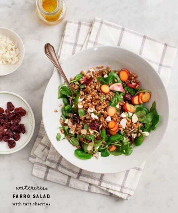 I love this making this salad for a light spring dinner. Use quinoa in place of farro to make it gluten-free, and if you can't find watercress, arugula would be good in its stead.
