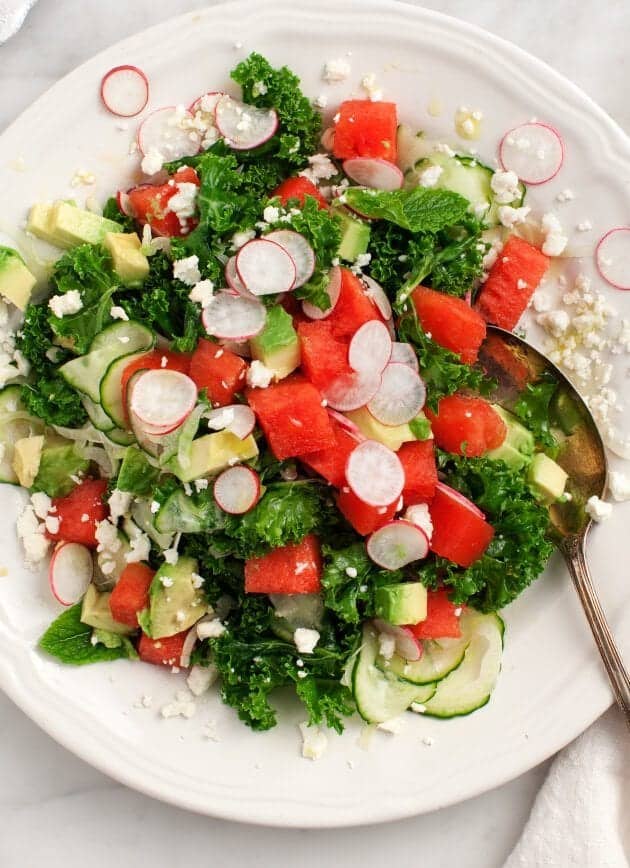 Recipe by Love and Lemons at https://fit-discovery.info/watermelon-feta-salad-kale-avocado/%3C/div%3E%3Cdiv