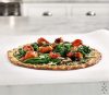 Crust needs to be baked for 25-30 minutes total. Since I was topping mine with pesto I baked the crust by itself entirely and added the toppings at the end. I sautéed the broccoli and roasted the tomatoes separately from the crust. If you’re making a pizza with cheese or tomato sauce, bake crust for about 15 minutes, then top with sauce and other toppings and bake for 10-15 minutes more. (Oven times may vary depending on your oven or consistency of your “dough”).