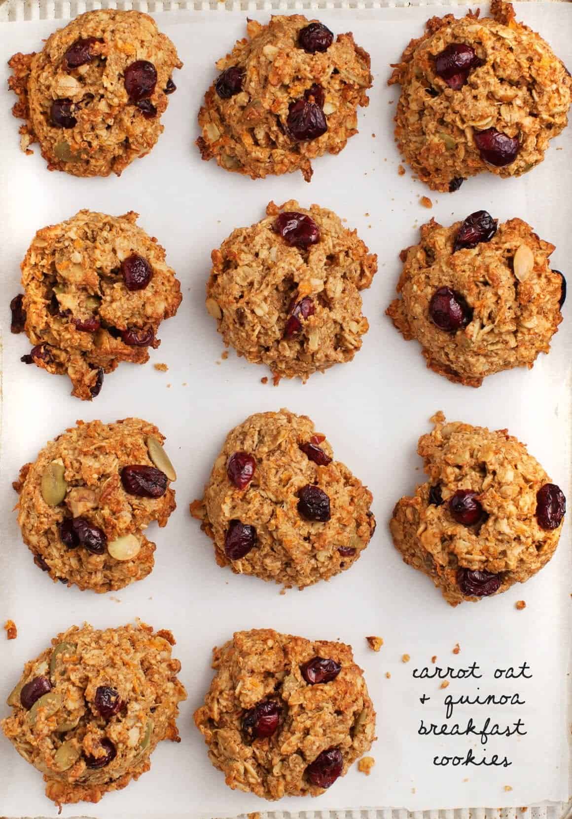 These vegan quinoa cookies are a great quick breakfast or healthy snack! Made with carrots, quinoa, and oats, they're naturally sweetened and gluten-free.