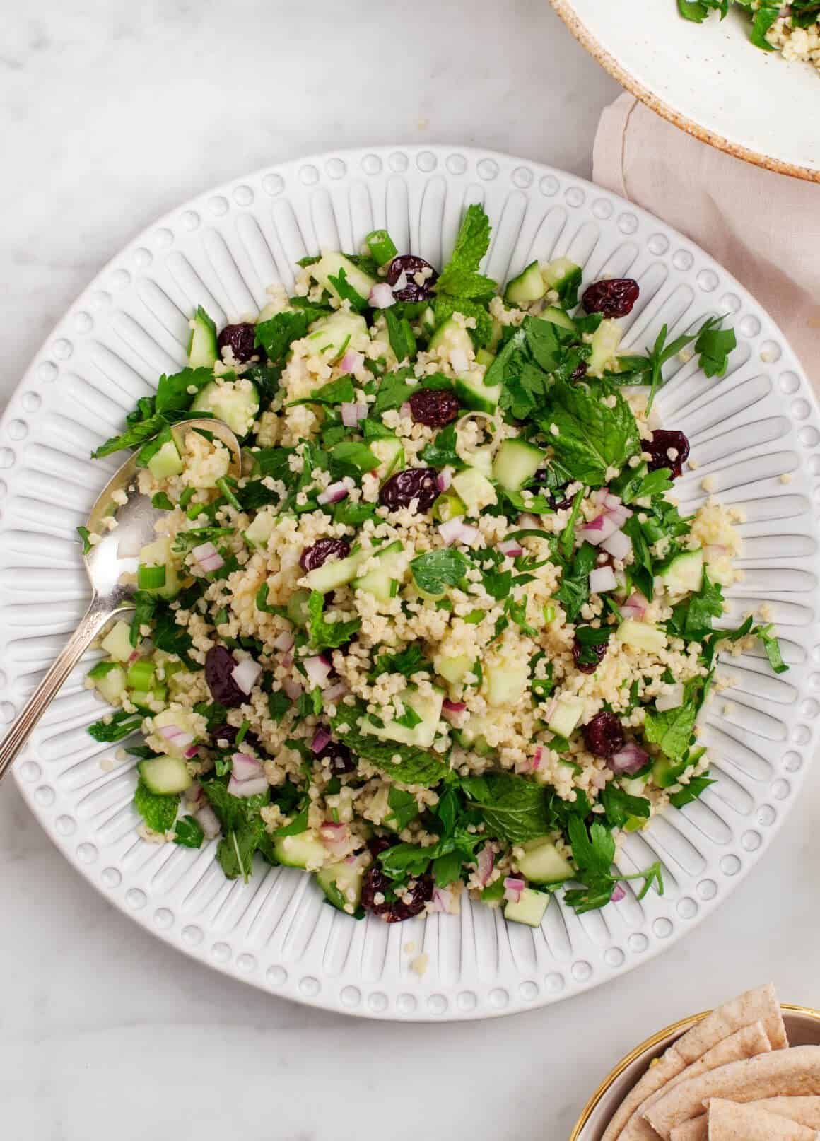 This unconventional tabbouleh recipe uses millet instead of bulgur and tart cherries in place of tomato. They add a wonderful sweet/tart pop of flavor to this delicious make-ahead friendly picnic salad.
