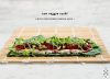 Place a ½ collard leaf on top of the nori, checking to be sure that the collard doesn’t extend beyond the nori in the back. (If it sticks out the sides it’s ok). The nori will need to stick to itself after you roll up the roll, otherwise it’ll fall apart.
