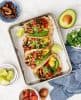 For a vegan option: I would make the tacos with a scoop of refried black beans, (spiced with a little chili powder) in place of the eggs.