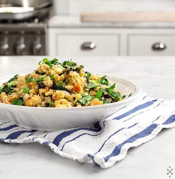 This gluten-free cornbread stuffing recipe is a spiced up twist on the Thanksgiving classic. Soft & moist, it's a delicious addition to your holiday table.