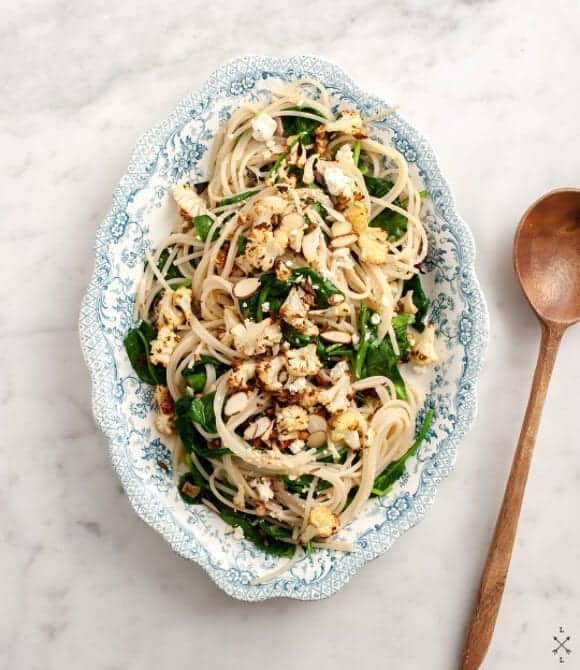 This simple roasted cauliflower pasta is a healthy vegetarian weeknight dinner. We love its flavors of lemon, sun-dried tomatoes, and herbs.